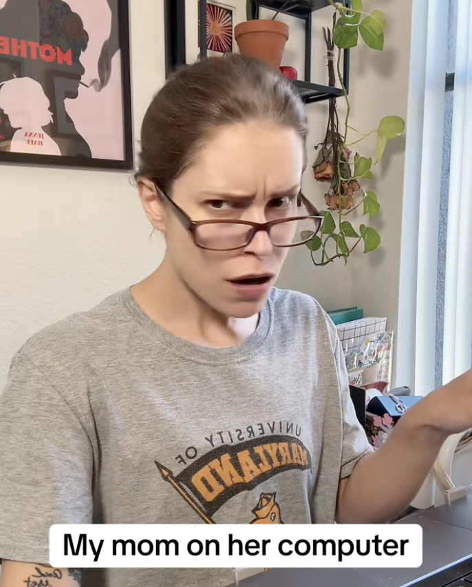 She began with inspiration from her mom, creating her Kohl’s mom persona, eventually becoming a brand ambassador for the company for the fall campaign. Her characters have since morphed from impressions of herself playing real life jobs as a kid, to the villainous Boy Mom, to a series of characters from 10,000 B.C., to the sterile offices of minimalist decor magnante Rae Dunn, and so many personas in between.